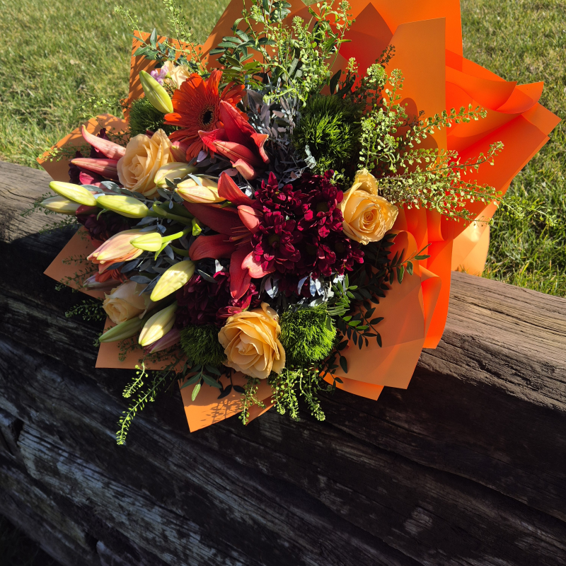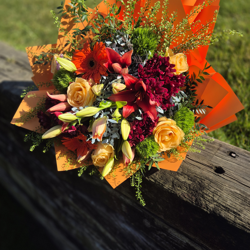 Elegantan buket sa ljiljanima i hrizantemama sa bogatom dekoracijom koji donosi spoj nežnosti i raskoši. Idealan izbor za poklon ili za unošenje svežine i lepote u svaki prostor.