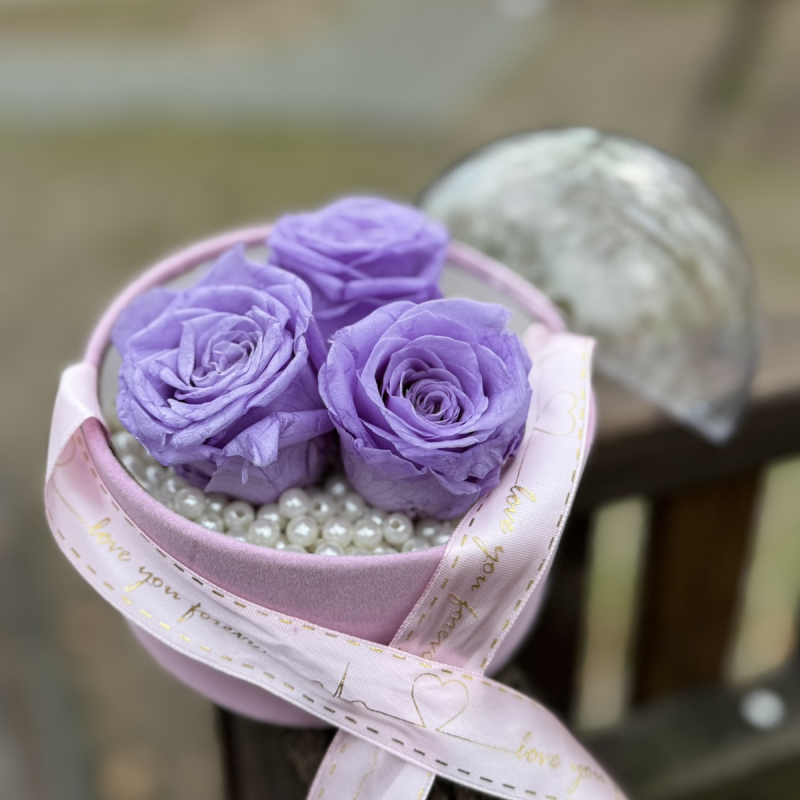 Elegantne lila dehidrirane ruže smeštene u dekorativnu kutiju, idealne za dugotrajnu dekoraciju ili poklon. Ruže zadržavaju oblik i boju bez potrebe za zalivanjem, unoseći sofisticiran i nežan detalj u svaki prostor. Savršen izbor za rođendane, godišnjice i posebne prilike.